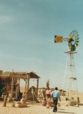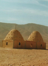 Tages: der Stopp im Café Bagdad. Ein Bienenkorb aus Lehm, ein Windrad und