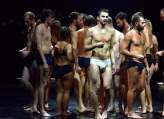 sich die nur mit Unterwäsche bekleideten Schauspieler auf die Vorstellung